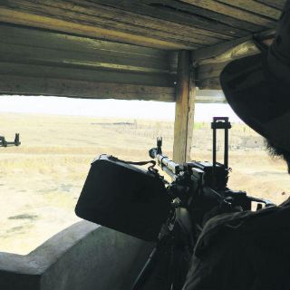 “Desde aquí observamos las afueras y estamos preparados para afrontar cualquier peligro o cualquier intento de infiltración”, indica Ivan Elian Jader, un combatiente de esta fuerza armada cristiana junto a una ametralladora Doshka del calibre 12.5, que apunta amenazante a un horizonte sobre el que el Sol cae a plomo.