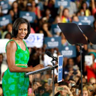 Michelle Obama hablo de los logros del gobierno en educación, creación de empleo y salud; los republicanos consideraron inapropiado el uso de las instalaciones escolares para hacer campaña politica