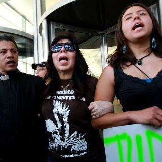 Los manifestantes habían anunciado un acto de desobediencia civil, con el posible ingreso forzado al edificio de oficinas, pero nadie lo intentó. En cambio, Landaverde y Emma Lozano, del Movimiento Sin Fronteras, se sentaron en la entrada del edificio y se negaron a cumplir el pedido policial de evacuar el lugar.