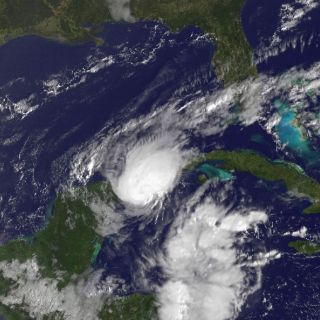 Según el Centro Nacional de Huracanes de Estados Unidos, el centro del ciclón de categoría 2 en la escala Saffir-Simpson, con vientos máximos sostenidos de 160 kilómetors por hora (km/h), se encontraba a las 14:00 GMT 105 kilómetros al oeste-suroeste de extremo occidental de Cuba, y tenía una velocidad de traslación de 7 km/h.