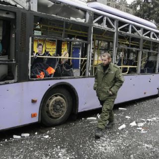 El ministerio ucraniano de Defensa informó que un proyectil impactó un trolebús dentro de una zona residencial de Donetsk, a unos 15 kilómetros de distancia de las zonas donde se registran los enfrentamientos entre las milicias y las tropas gubernamentales.