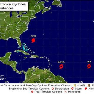 Asimismo, el huracán de categoría 1 “José” se mantiene entre las Bahamas y las Bermudas, moviéndose con rumbo norte a 6 millas por hora (9 km/h), según el CNH, en el que pronosticó que bajo ese patrón de trayectoria "el centro de José se desplazará sobre el oeste del Océano Atlántico, entre la costa este de Estados Unidos y Bermudas, durante el lunes"