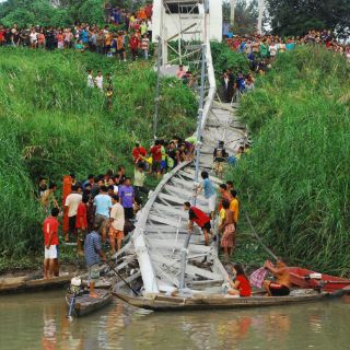 El puente se desplomó en la tarde del domingo cuando se rompió uno de los cables que lo soportan, a pesar de que el año pasado fue reparado con un coste de 8 millones de bat (unos 273 mil dólares), según el diario "Bangkok Post".