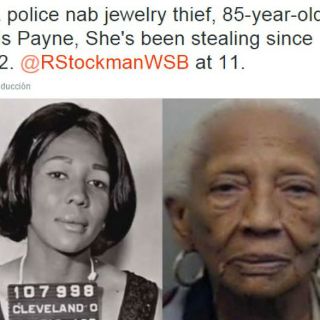 La policía informó que Payne, ahora con 85 años, volvió a caer: recientemente fue arrestada y acusada de embolsarse un par de aretes de 690 dólares de la tienda departamental Saks Fifth Avenue en Atlanta.