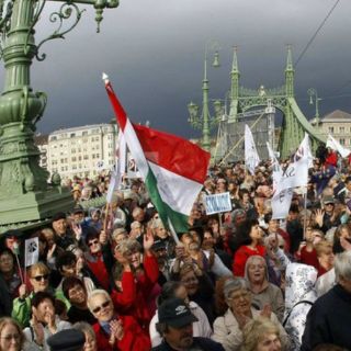 Los 10 mil participantes levantaron carteles con mensajes contra el gobierno del conservador Viktor Orbán. ''Fuera Orbán!'', ''Gobierno mafioso'', fueron las proclamas más repetidas.