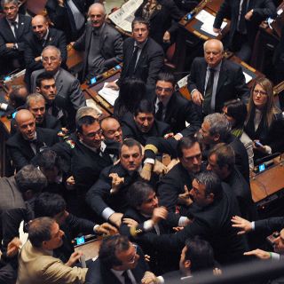 Squilini y Calearo ya habían anunciado su voto a favor del primer ministro, pero el de Polidori resultó completamente inesperado, lo que ocasionó una pelea luego de que un diputado de FLI le gritó "troia" (prostituta).