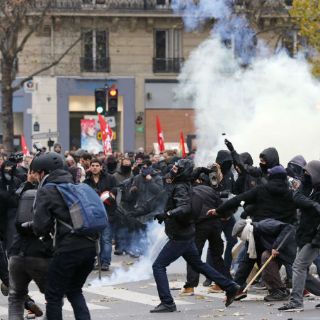 Los jóvenes, algunos de ellos enmascarados, habían arrojado piedras a la policía en protesta por la cancelación de la gran manifestación que hoy debía celebrarse y que fue cancelada, por motivos de seguridad, tras los atentados del 13-N.