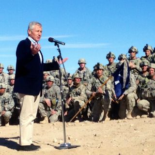 El jefe del Pentágono habló con periodistas tras observar un entrenamiento del ejército en el desierto de Mojave, en California.