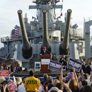 El mitin a bordo del USS Iowa, que fue donado a la ciudad de Los Ángeles hace tres años y desde entonces se ha convertido en un museo flotante anclado en el puerto, fue organizado por la asociación "Veterans for a Strong America", y a él acudieron unos mil asistentes.