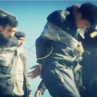 Acto seguido, dos de ellos son transportados a una zona al aire libre, donde son rociados con gasolina por hombres encapuchados y colocados de rodillas con explosivos adheridos a sus cuerpos.