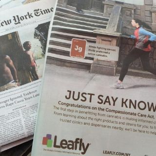 NYT) publicó un anuncio a toda página de Leafly, una web que promociona el uso de la mariguana ofreciendo a sus usuarios información sobre distintos tipos de cannabis y lugares donde comprar de forma legal en Estados Unidos.
