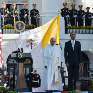 Papa Francisco llegó a la Casa Blanca para reunirse con el presidente Barack Obama, mientras más de 10.000 personas se encontraban en el patio de la mansión presidencial para la ceremonia de bienvenida.