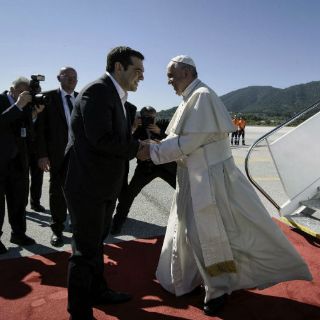 Tras intercambiar unas palabras con el primer ministro, el pontífice saludó a los líderes ortodoxos que lo acompañarán durante su visita a la isla, que durará apenas cinco horas. Se trata del arzobispo de Atenas y toda Grecia, Hieronymos, y el patriarca de Constantinopla en Turquía, Bartolomé I.