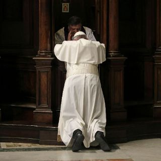 Francisco acudió hoy a uno de los confesionarios de la Basílica de San Pedro del Vaticano para confesarse de rodillas durante el Rito de la Reconciliación que ofició en el templo, previo al cuarto domingo de Cuaresma.