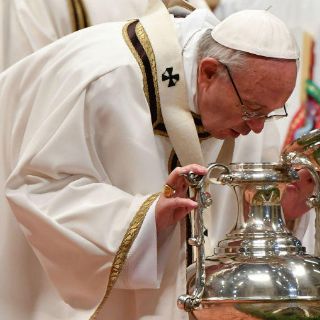 Ante más de cuatro mil personas congregadas en la Basílica de San Pedro, el Pontífice bendijo los santos óleos que serán usados durante el próximo año al impartir los sacramentos de la confirmación y el bautismo.