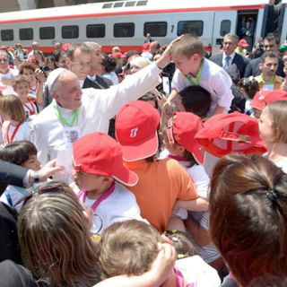 Tras el rezo del Ángelus desde la ventana del apartamento papal en el Palacio Apostólico, Francisco bajó a la plaza de San Pedro a saludar personalmente a 250 pequeños llegados en el llamado "tren de los niños" a bordo del ferrocarril Flecha de Plata hasta la Estación del Vaticano.