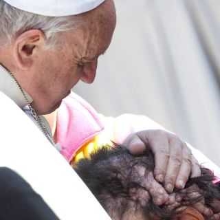 Papa Francisco puso hoy sus manos sobre la cabeza deformada de una persona visiblemente enferma, y antes de la audiencia recibió en la residencia de santa Marta a un niña de un año y medio también muy grave y por la que pidió a los fieles que rezaran por ella.