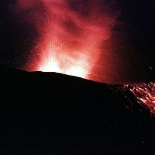 Sicilia, continúa hoy en erupción, con emisiones de ceniza del nuevo cráter del sureste, mientras una colada emerge de una fractura de la boca y desciende hacia el desértico Valle del Bove, lejos de zonas habitadas.