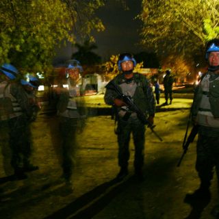 La ONU desplegó cascos azules en lugares estratégicos de Puerto Príncipe, dijo Jean-François Vézina, portavoz de la policía de la misión de la ONU para la estabilidad de Haití (Minustah).
