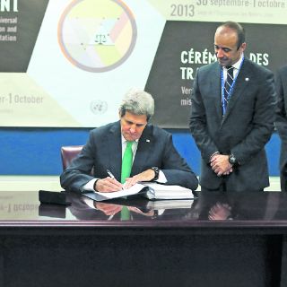 En una ceremonia al margen de la sesión 68 de la Asamblea General, secretario de Estado estadounidense, John Kerry, firmó el tratado al igual que más de una docena de naciones.