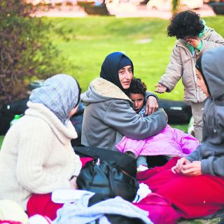 Un grupo de refugiados sirios que arribó el año pasado a Uruguay, protesta ante la sede de Gobierno, exigiendo dejar el país, pues argumentan que vivir ahí les resulta demasiado caro.