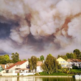 La revista People publicó una foto de una gran nube de humo detrás de una colina llena de maleza, publicada por la modelo Kim Kardashian en la red social SnapChat. En el mismo sitio, su hermana Kylie Jenner, también modelo, escribió: "¿Tendré que evacuar?".