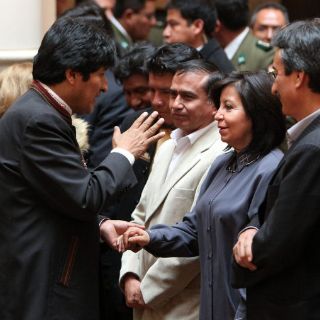 LA PAZ, BOLIVIA (24/ENE/2011).- El presidente de Bolivia, Evo Morales, cambió a tres de sus 20 ministros, entre ellos al de Hidrocarburos, a quien exigió solucionar la crisis por la baja producción petrolera, durante un acto oficial realizado en la sede de Gobierno.