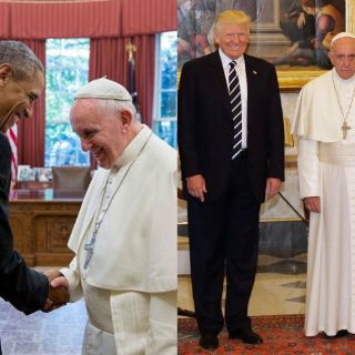 Y hoy Souza compartió una fotografía en la que el Papa Francisco y Obama se estrechan la mano con amplias sonrisas, lo que contrasta con la imagen que ya le dio la vuelta al mundo en la que el pontífice tiene una seria expresión durante la visita de Trump.