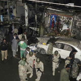 La explosión, que se llevó a cabo por control remoto, también dejó otras tiendas, edificios y vehículos dañados, según la policía, citada por la cadena de televisión paquistaní Geo TV.