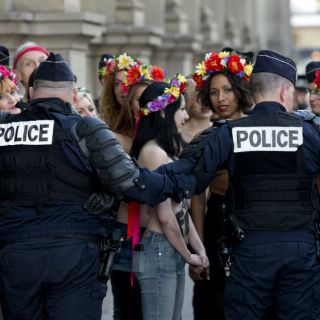 Ante los ojos de varias decenas de turistas, las fuerzas del orden finalmente detuvieron a las militantes, que protestaban contra la multa de mil 500 euros por exhibicionismo y degradaciones impuesta el 15 de octubre a una de sus miembros, la ucraniana Yana Jdanova, quien atacó la estatua de cera del presidente ruso, Vladimir Putin, en el museo Grévin.