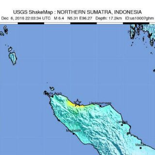 YAKARTA, INDONESIA (06/DIC/2016).- Un fuerte terremoto submarino sacudió el miércoles la provincia de Aceh y causó algunos daños. El Servicio Geológico de Estados Unidos señaló que el sismo de magnitud 6.4 se registró a las 5:03 a.m. (2203 GMT) con epicentro aproximadamente 10 kilómetros al norte de Reuleut, un poblado en Aceh, al norte del país, con una profundidad de 17.2 kilómetros.