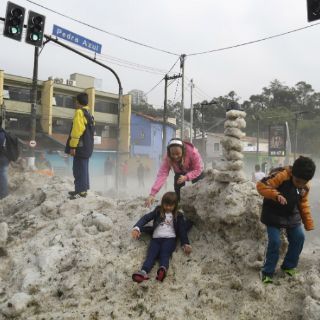 Sao Paulo, dejando algunas calles inundadas o cubiertas de blanco en la ciudad más poblada de Brasil.
