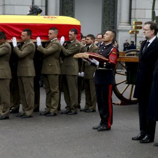 La familia, junto al presidente del gobierno español, Mariano Rajoy, ministros, representantes de altas instituciones del Estado y clase política acompañaron el féretro custodiado por militares del Ejército de Tierra.