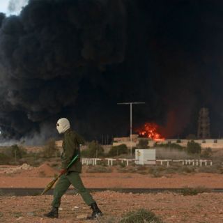 Poco antes, Ras Lanuf se había visto remecida por una serie de explosiones que provocaron un incendio con llamaradas gigantes sobre la refinería As Sidra.