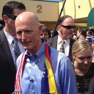 En una visita a un restaurante venezolano, Scott y el senador de origen cubano Marco Rubio expresaron su solidaridad con un gran número de venezolanos reunidos en el lugar que protestaban por la violencia en su país, que ha dejado más de una docena de muertos.