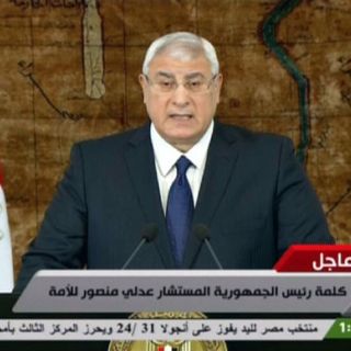 En un breve discurso transmitido por televisión, el presidente interino Adly Mansur dijo que pedirá a la comisión electoral que abra al registro para registrar candidatos presidenciales como lo establece la constitución.