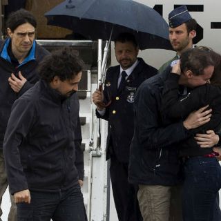 Los tres periodistas fueron recibidos en la base aérea de Torrejón por sus familiares y la vicepresidenta del Gobierno y por el momento no hicieron declaraciones a la prensa acerca de su cautiverio.