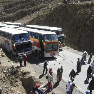Imágenes de APTN, la división televisiva de la AP, mostraban a un grupo de campesinos corriendo y lanzando piedras a los autobuses, y podía apreciarse a una señora herida por las pedradas.