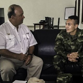 El militar fue entregado a una comisión humanitaria conformada por personal del Comité Internacional de la Cruz Roja (CICR) y representantes de la Iglesia católica. Poco después de mediodía era trasladado en helicóptero a Barrancabermeja.