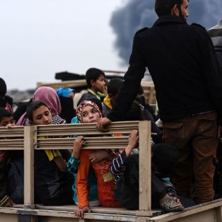 Las familias escapan de los duros enfrentamientos, que estallaron hoy, en dirección a Al Qayara