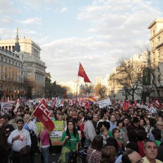 En Madrid, casi un millón de personas salieron a la calle, según los cálculos del secretario general de CCOO, Ignacio Fernández Toxo, quien se refirió a la marcha como "un río democrático de personas que defienden sus derechos y el modelo social que tanto tiempo y esfuerzo ha costado a este país".