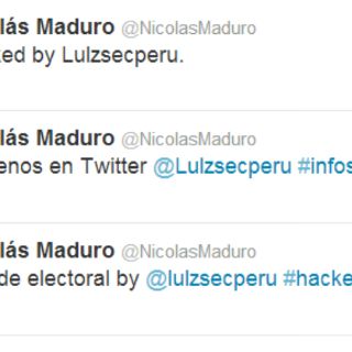 Además, las paginas web http://www.nicolasmaduro.org.ve/ y http://www.maduro.org.ve/ pertenecientes al presidente encargado de Venezuela también fueron hackeadas por el mismo usuario LulzSecPeru.