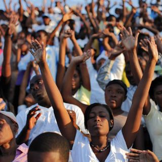 En una ceremonia en las ruinas de la catedral nacional en la devastada capital Puerto Príncipe, a la que asistió el enviado papal a Haití, muchos dolientes extendían sus brazos, gritando los nombres de los seres queridos que perdieron e implorando la ayuda de Dios.