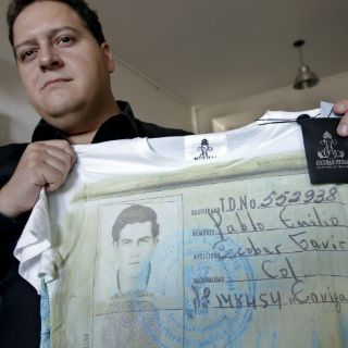 BUENOS AIRES, ARGENTINA (30/AGO/2012).- El documento de identidad del narcotraficante colombiano Pablo Escobar, sus tarjetas de crédito y un certificado de antecedentes penales aparecen estampados en una colección de ropa creada por su hijo con la que asegura, frente a las críticas, que quiere invitar a "no repetir su historia".
