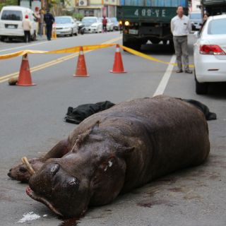 TAIPEI, TAIWÁN (27/DIC/2014).- Un hipopótamo que era transportado en camión en