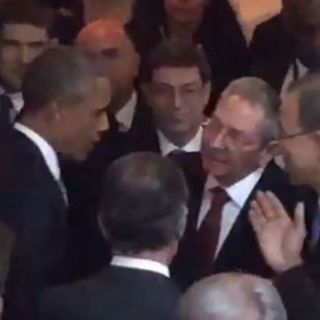 El momento fue captado por decenas de cámaras en el sitio y en un breve video se aprecia a Obama y Castro rodeados por funcionarios y por otros mandatarios como el presidente de Ecuador, Rafael Correa, y su canciller Ricardo Patiño; el secretario general de la ONU, Ban Ki-moon y los jefes de Estado de Colombia, Juan Manuel Santos, y de Panamá, Juan Carlos Varela.