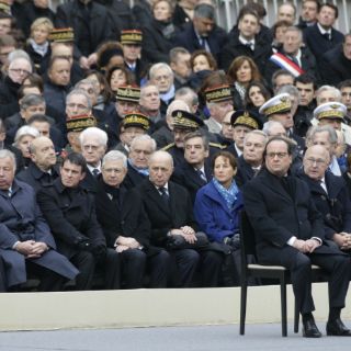 Leídos los nombres, el patio quedó en silencio, roto finalmente por un violonchelo. Hollande miraba hacia adelante y finalmente se paró y dijo: