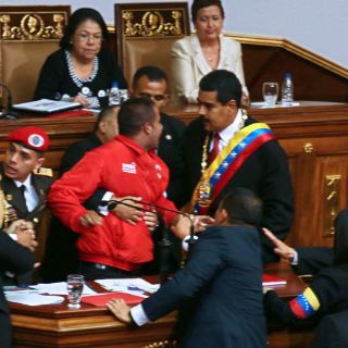 CARACAS, VENEZUELA (19/ABR/2013).- Nicolás Maduro juró este viernes como mandatario de Venezuela, durante el acto en la Asamblea Nacional un hombre se coló hasta la tribuna y despojó del micrófono al presidente Nicolás Maduro, que interrumpió por unos minutos su discurso de investidura.