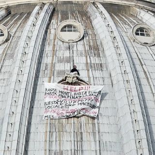 CIUDAD DEL VATICANO (03/OCT/2012).- Un hombre italiano eludió la seguridad del Vaticano y escaló el domo de 130 metros (426 pies) de la Basílica de San Pedro para protestar contra el gobierno italiano y las políticas de la Unión Europea.