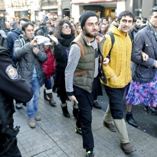 Una veintena de hombres desfilaron ante las miradas curiosas y en algunos casos, divertidas, de los viandantes en la gran calle peatonal de Istiklal, que lleva hasta la famosa plaza de Taksim.